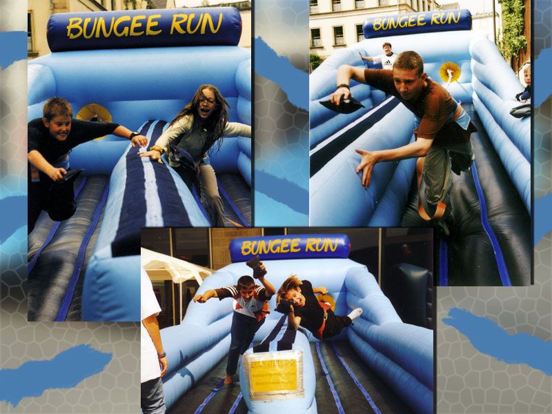Die Spieler sind mit einem Gurt an Bungeeseilen festgemacht und müssen versuchen, so weit wie möglich nach vorne zu rennen und dort eine Markierung mit Klett anzubringen.