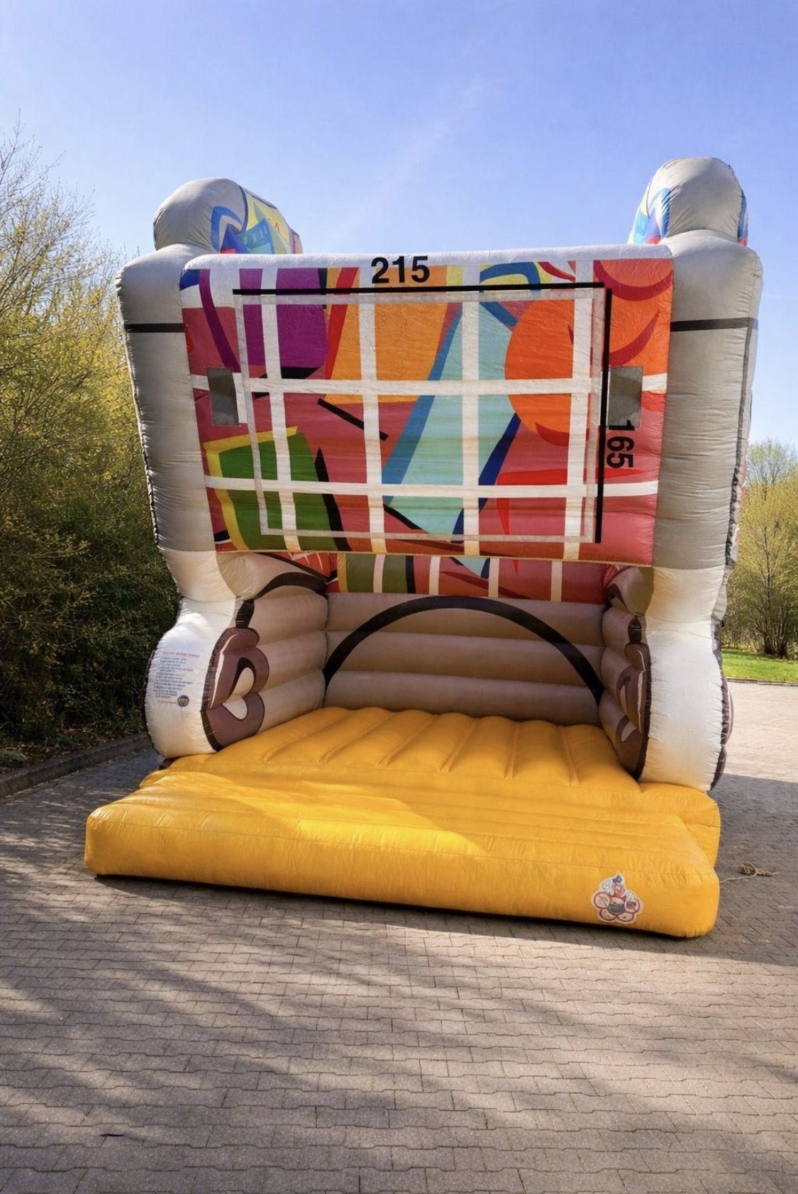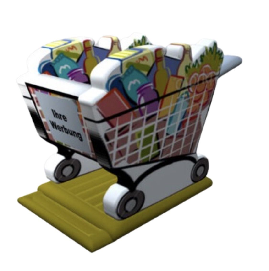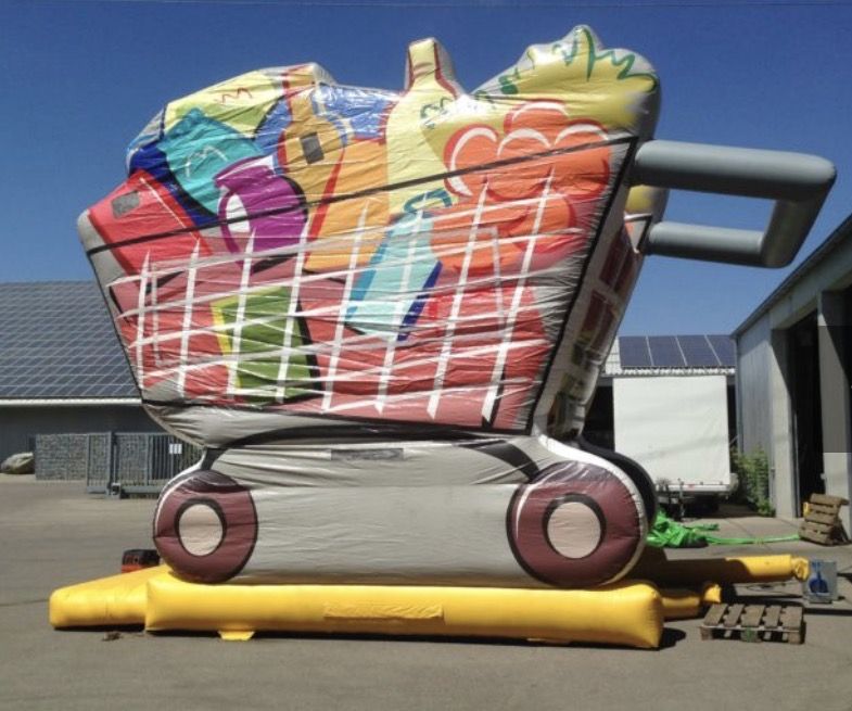 Die Hüpfburg Einkaufswagen ist ein Blickfang,