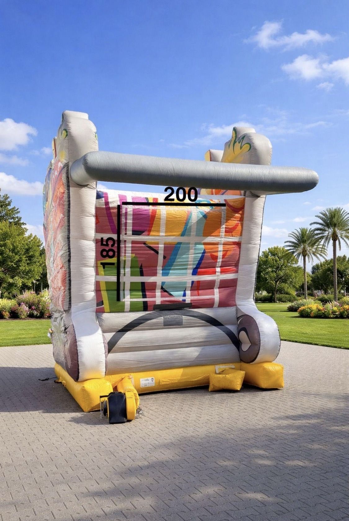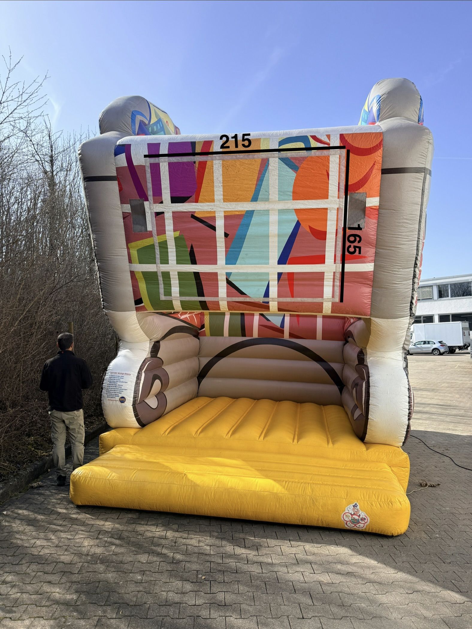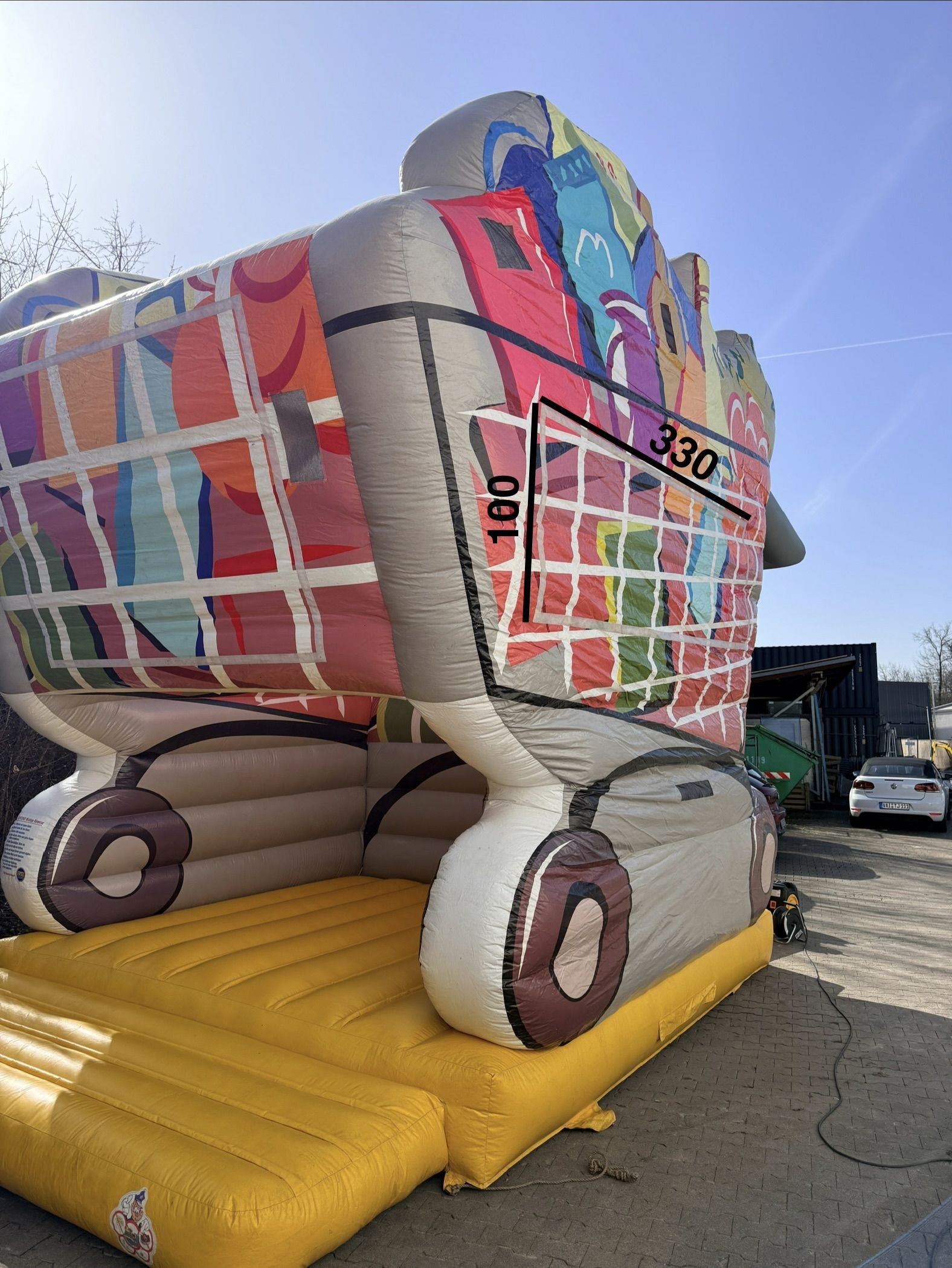 Die Hüpfburg Einkaufswagen ist ein Blickfang,