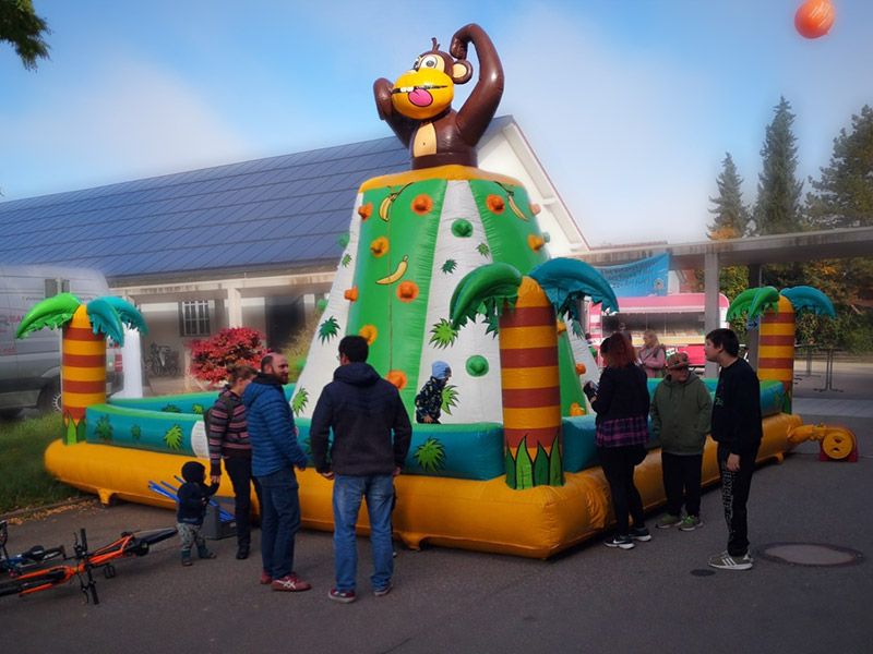 Der Kletterberg Affe kann von 4 Seiten aus geklettert werden, an 2 Seiten hilft ein Seil für den Aufstieg.